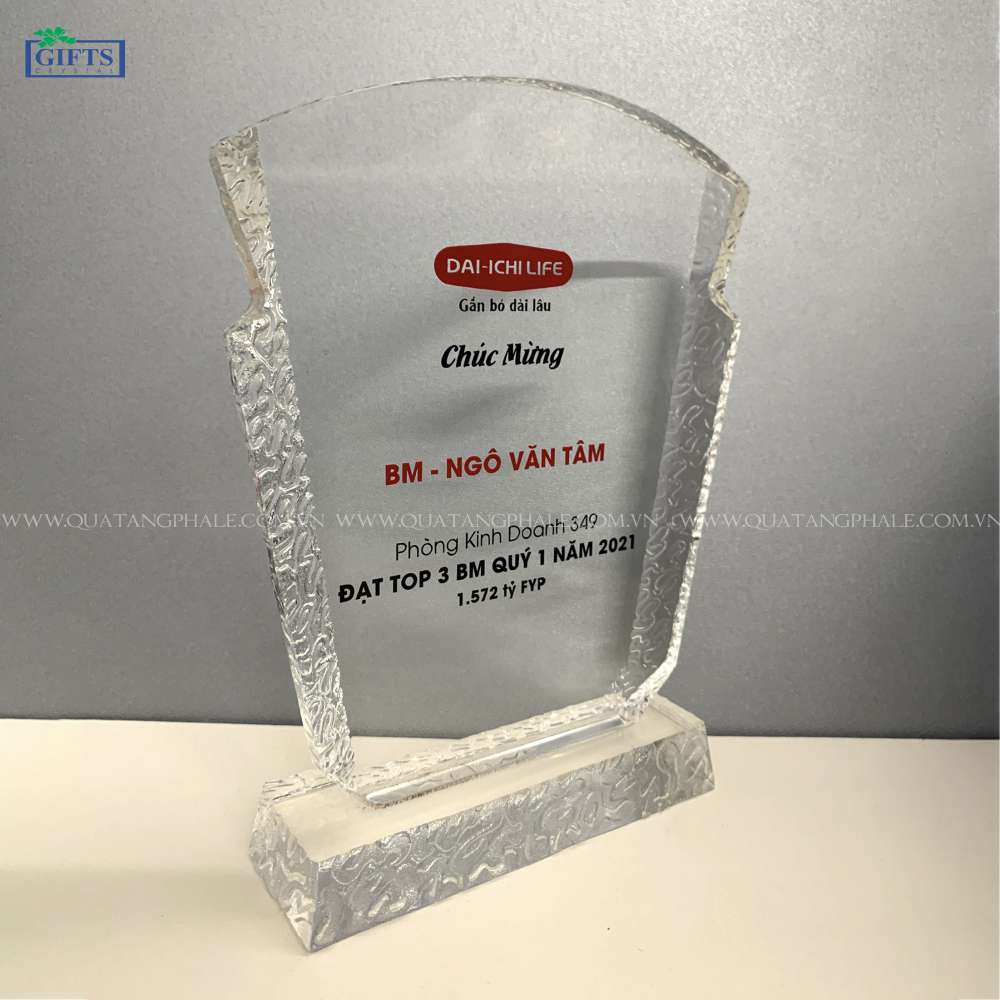 - Đặc biệt, kỷ niệm chương pha lê còn có thể in khắc logo, nội dung lên sản phẩm trong quá trình sản xuất.